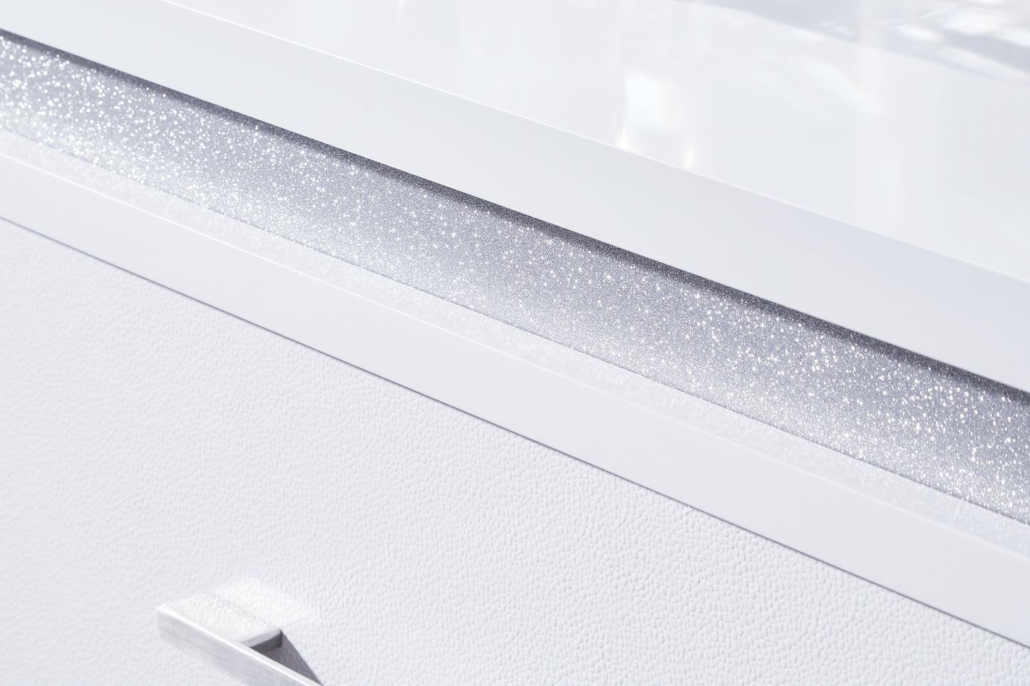 This dresser is a showstopper, bringing a touch of modern glamour to your sanctuary. A sleek white finish and inset glitter accents create a sophisticated feel, while spacious drawers provide practical storage. It’s a simply stunning way to achieve the bedroom of your dreams.