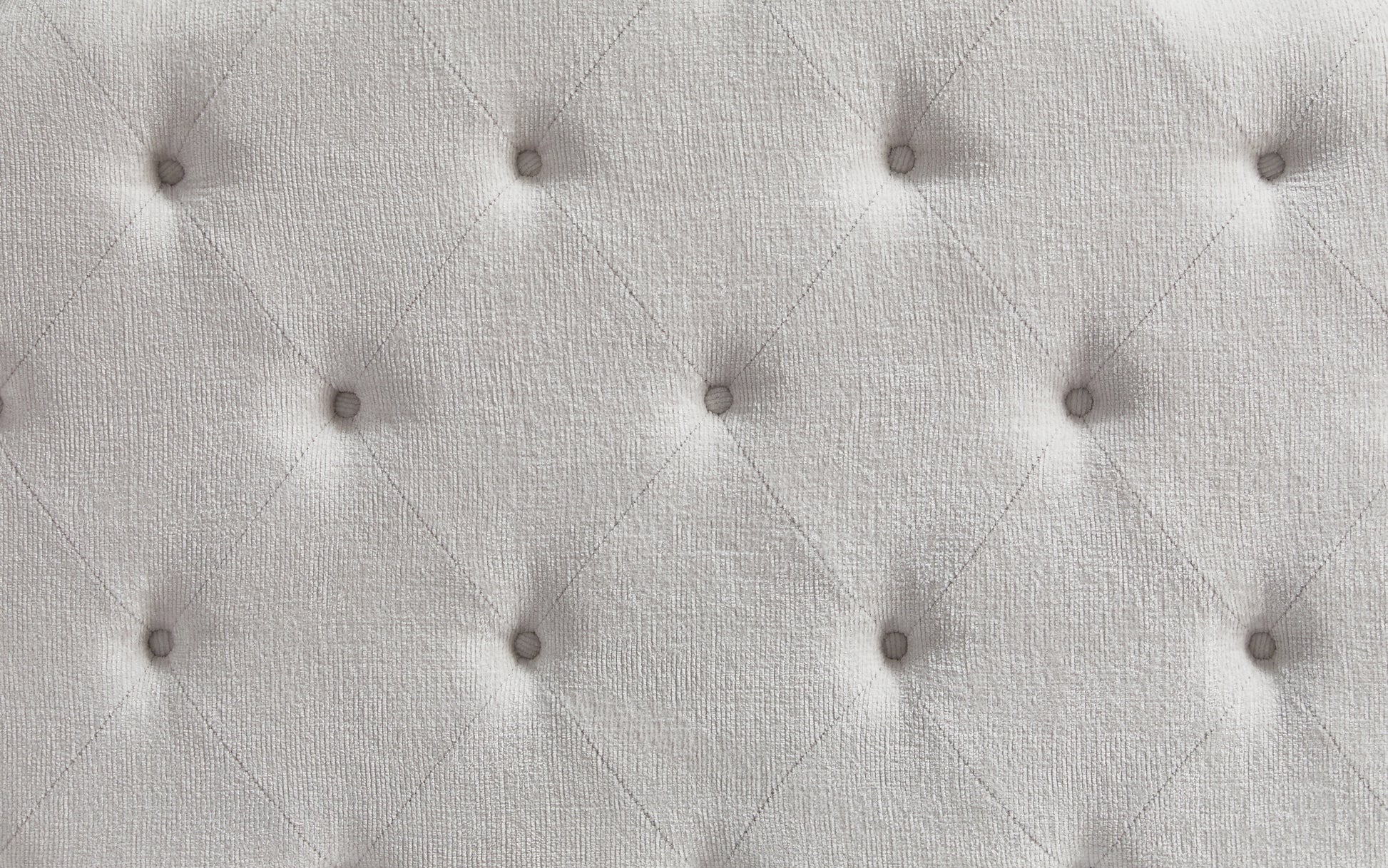 Transform your inner sanctum into a haven of timeless elegance. This traditionally inspired queen upholstered panel bed features a cushioned headboard embellished with a serpentine-shaped crown and light pearl gray upholstery. A contoured footboard with picture frame moulding completes the ageless aesthetic. And did we mention the classic antiqued white finish and stylish reeded bun feet? Talk about relaxed refinement.