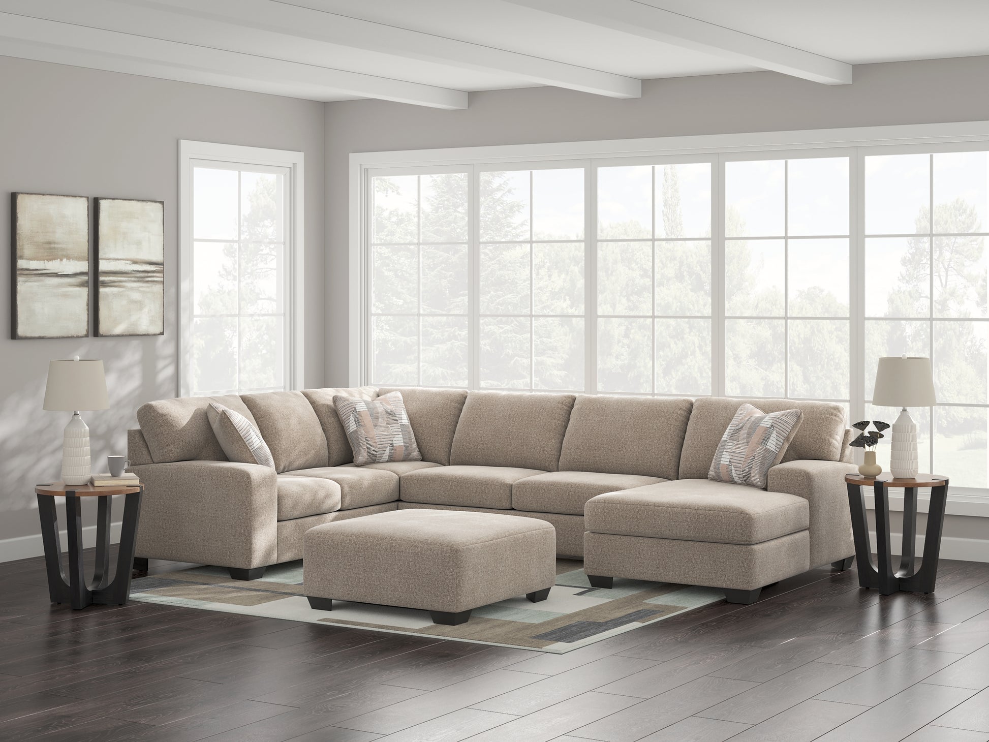 Details Includes 3 pieces: left-arm facing sofa with corner wedge, armless loveseat and right-arm facing corner chaise, "Left-arm" and "right-arm" describe the position of the arm when you face the piece , Corner-blocked frame , Attached back and loose seat cushions, High-quality foam cushions wrapped in poly fiber, Accent pillows included, Pillows with soft polyfill, Polyester upholstery, Exposed feet with faux wood finish  , Platform foundation system resists sagging 3x better than spring system after 20,000 testing cycles by providing more even support, Smooth platform foundation maintains tight, wrinkle-free look without dips or sags that can occur over time with sinuous spring foundations
