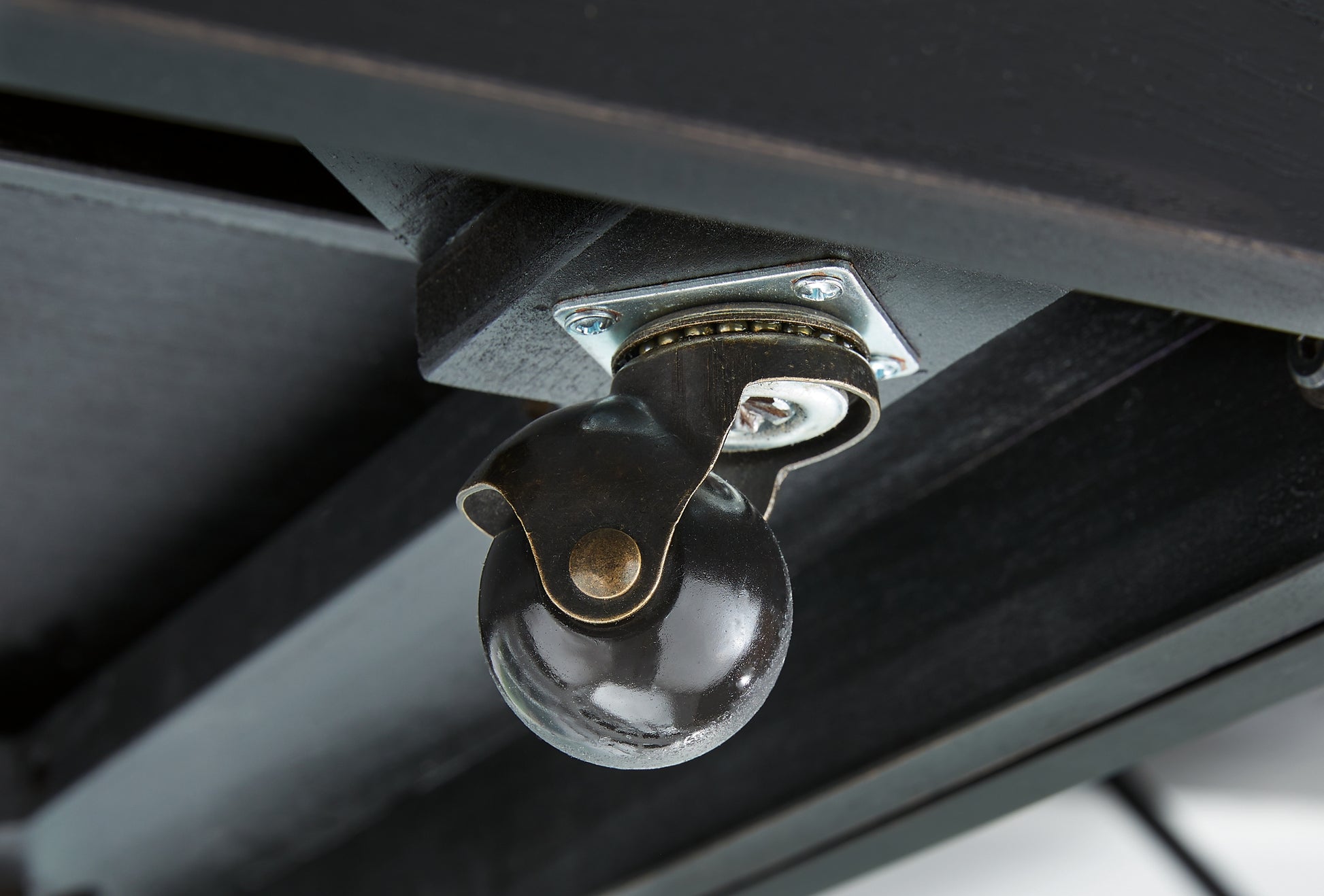 | Details | Made with hardwood solids, mindi veneer and MDF substrate, Black finish with wood grain texture, Fluted glass tabletop, Smooth-gliding drawer, Drawer pulls with goldtone finish, Lower open shelf, Casters for easy mobility | |