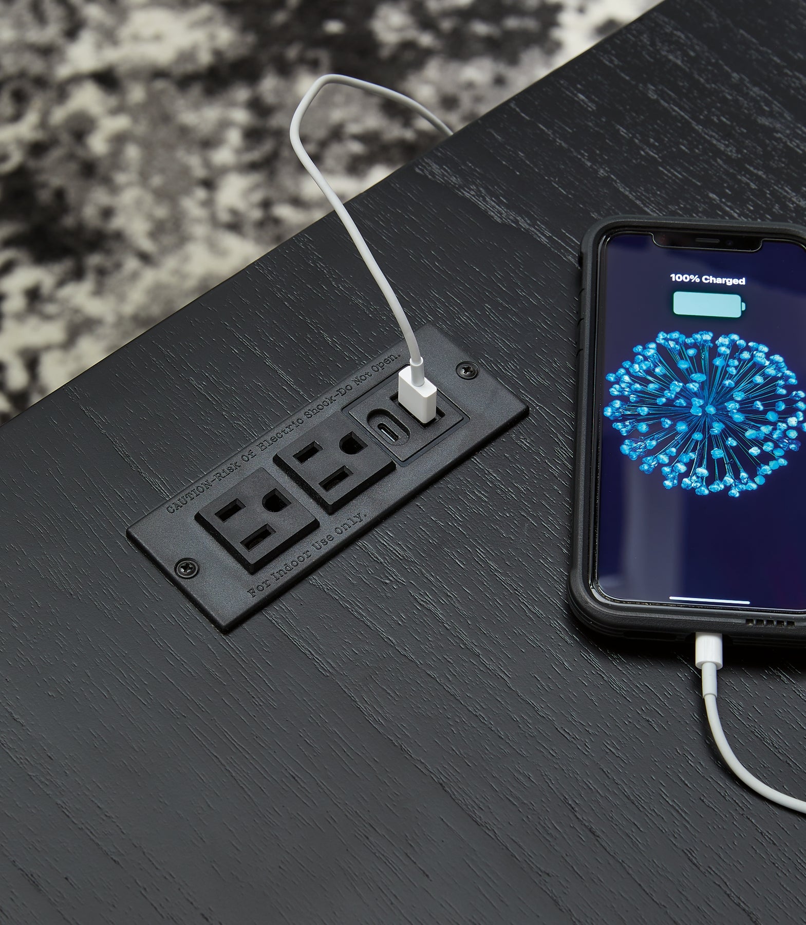 If you are a lover of simplicity, this end table is the perfect choice. Its black finish, casual contemporary design and spacious storage capacity provide functional style wherever it’s displayed. And with conveniently located USB charging ports, this table keeps up with your high-tech lifestyle.